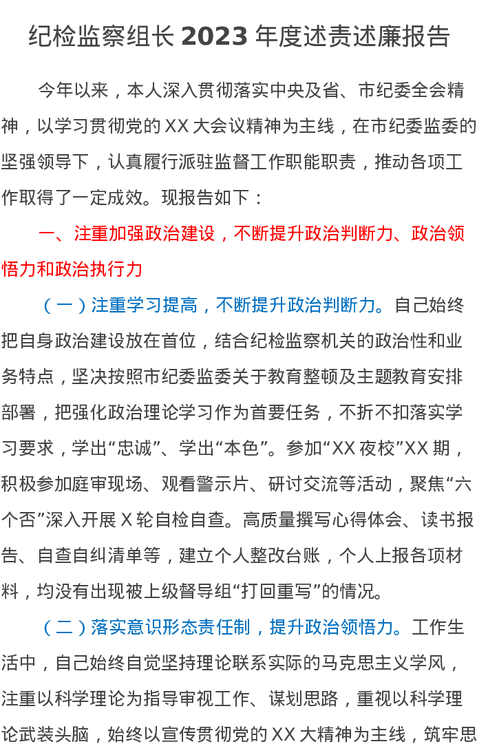 纪检监察组长2023年度述责述廉报告