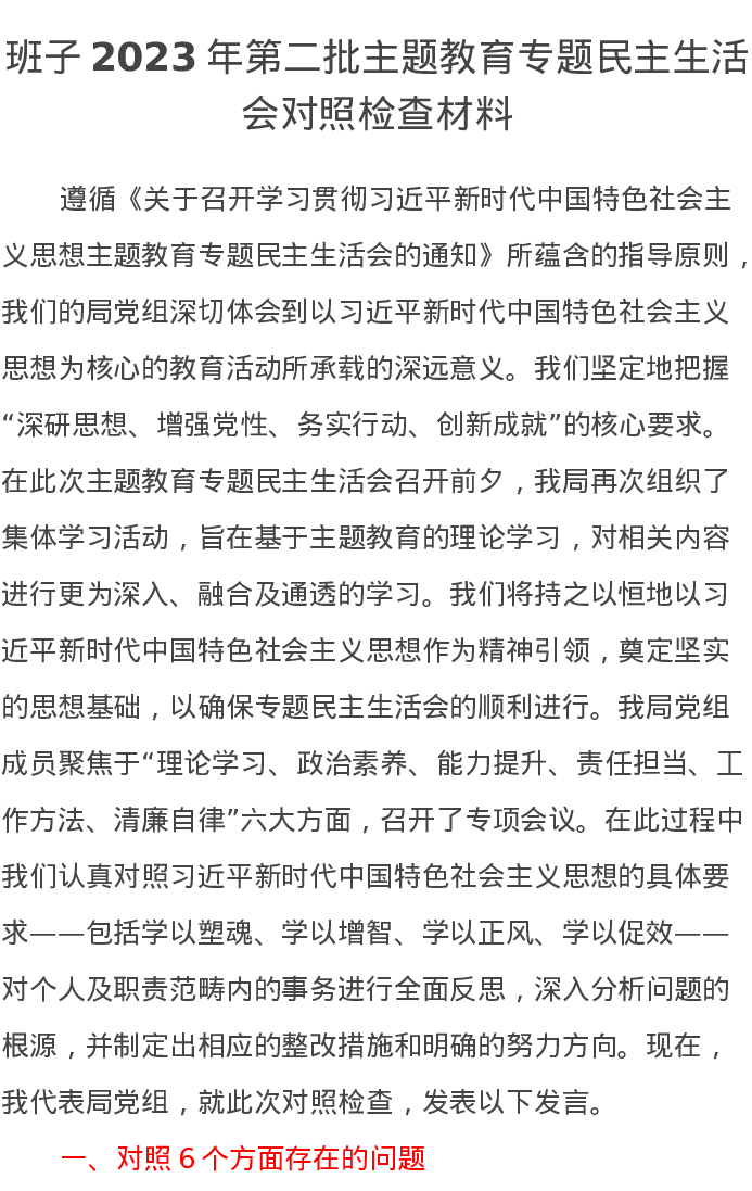 班子2023年第二批主题教育专题民主生活会对照检查材料