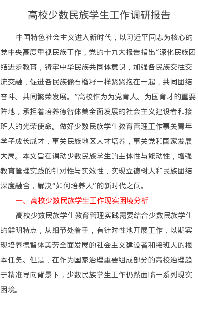高校少数民族学生工作调研报告