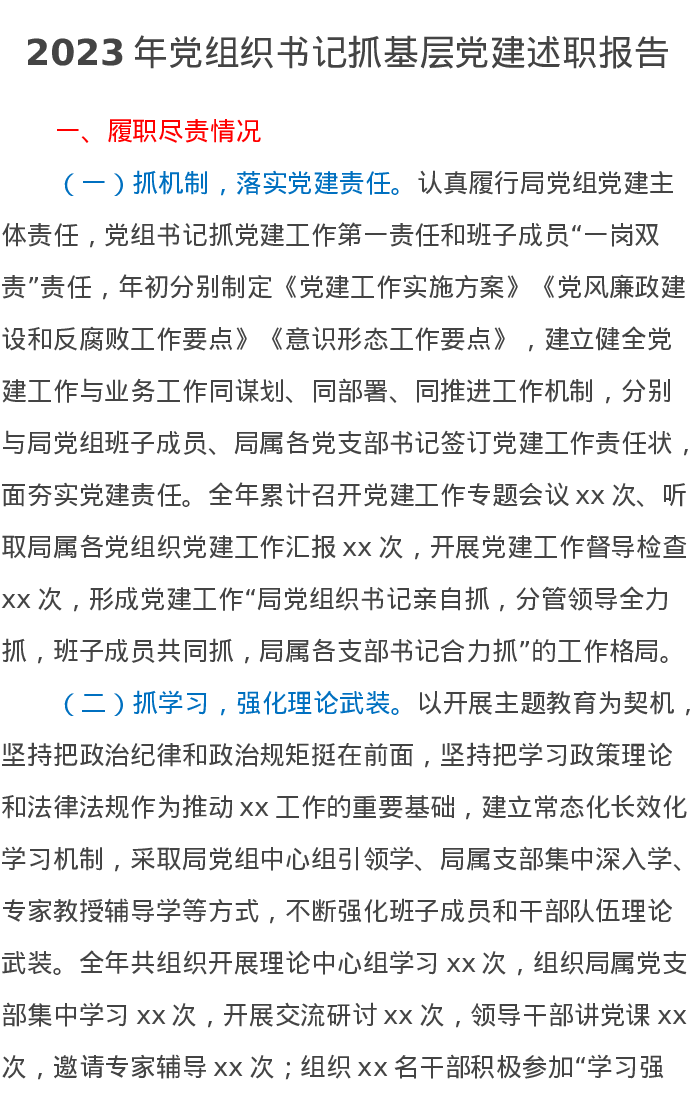 2023年党组织书记抓基层党建述职报告