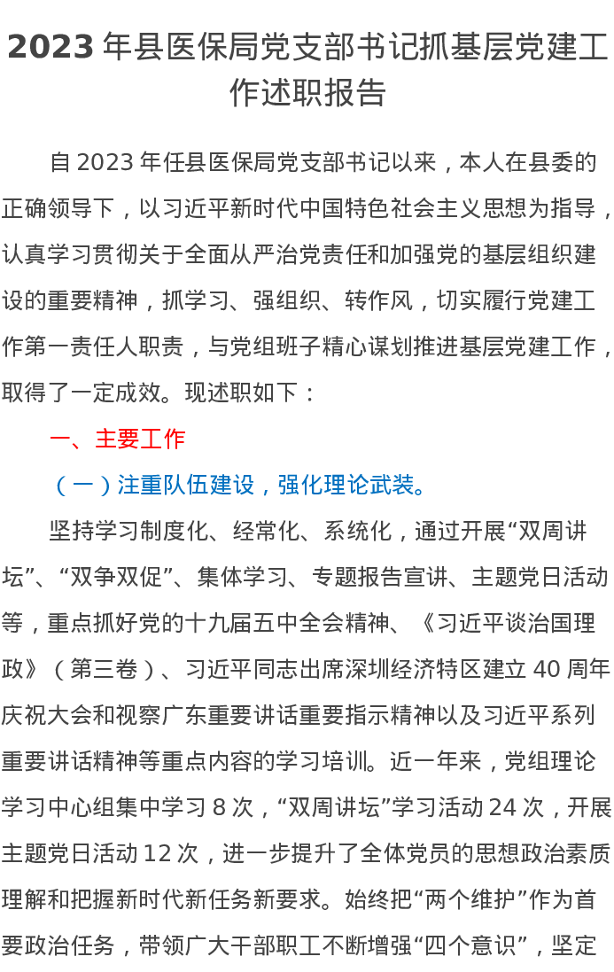 2023年县医保局党支部书记抓基层党建工作述职报告