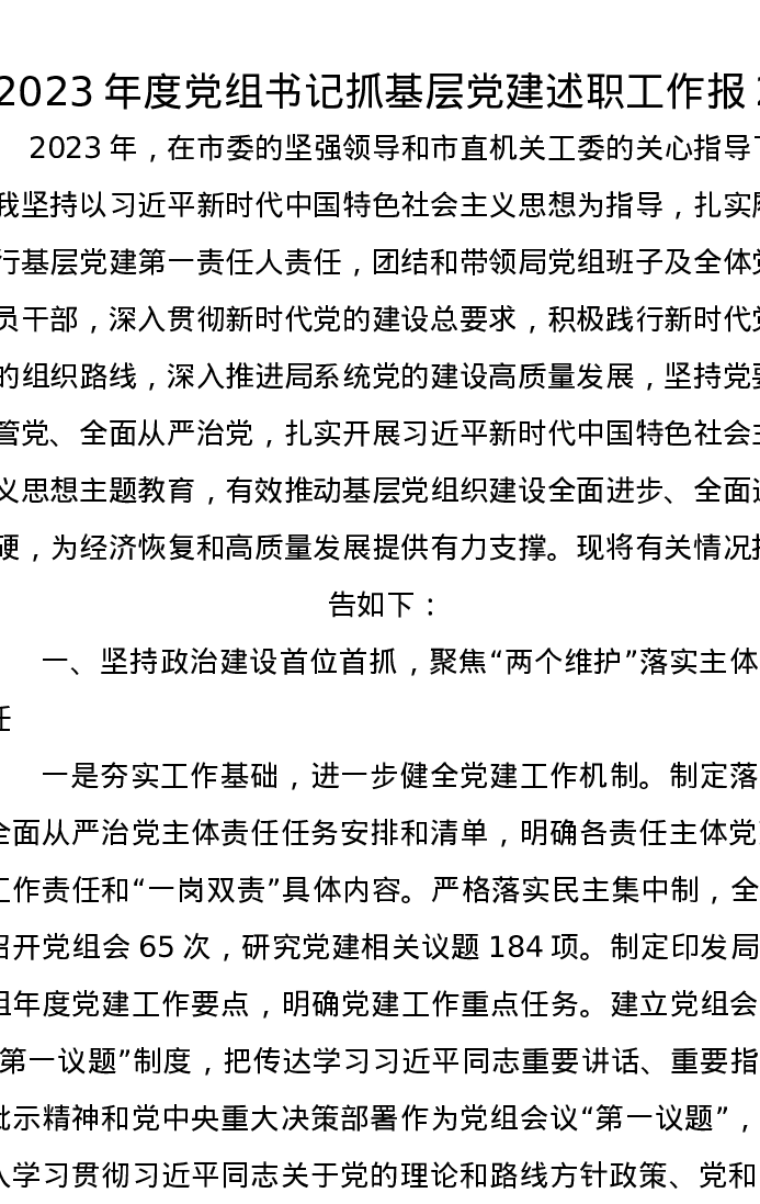 2023年度党组书记抓基层党建述职工作报2