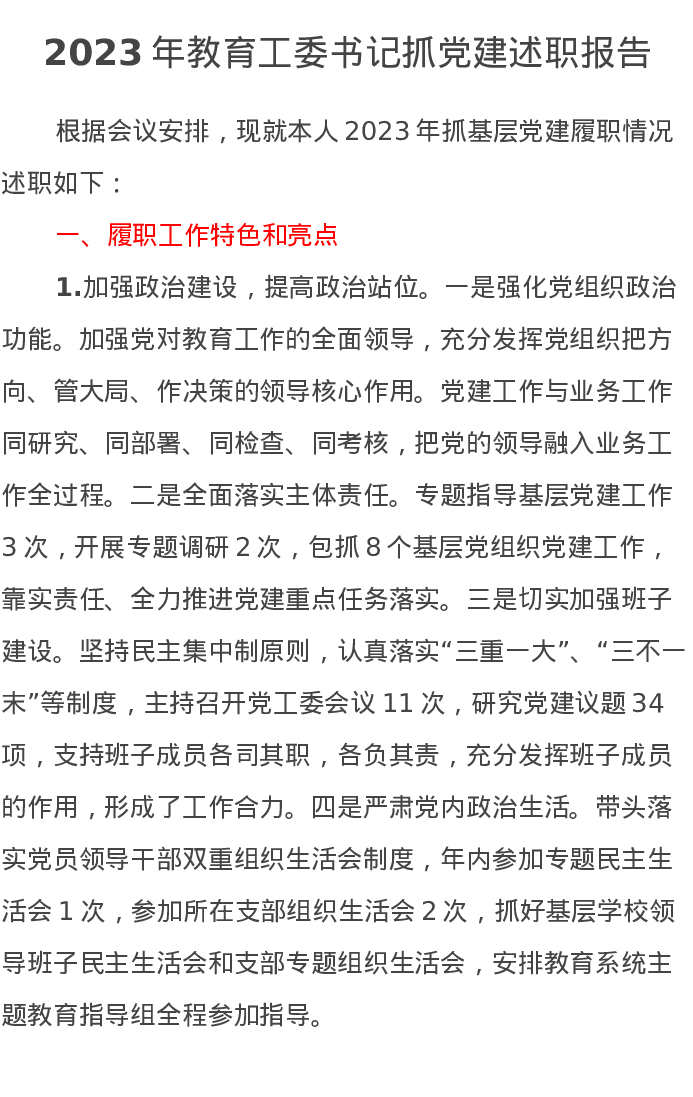 2023年教育工委书记抓党建述职报告