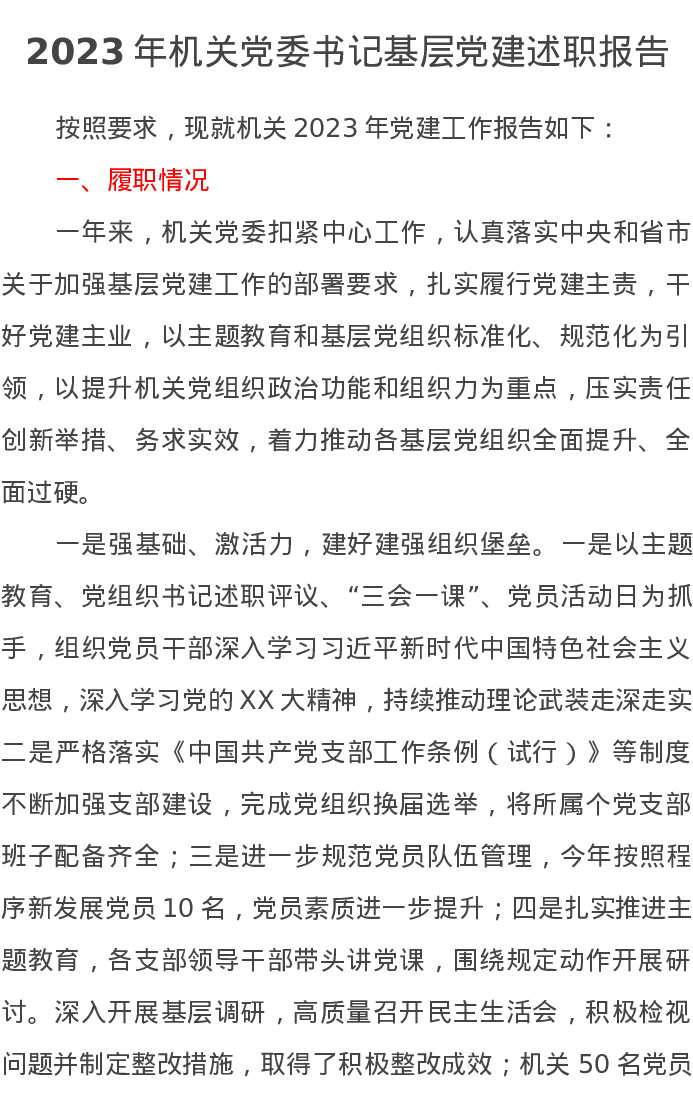 2023年机关党委书记基层党建述职报告