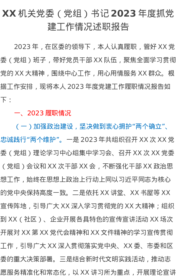 XX机关党委(党组)书记2023年度抓党建工作情况述职报告