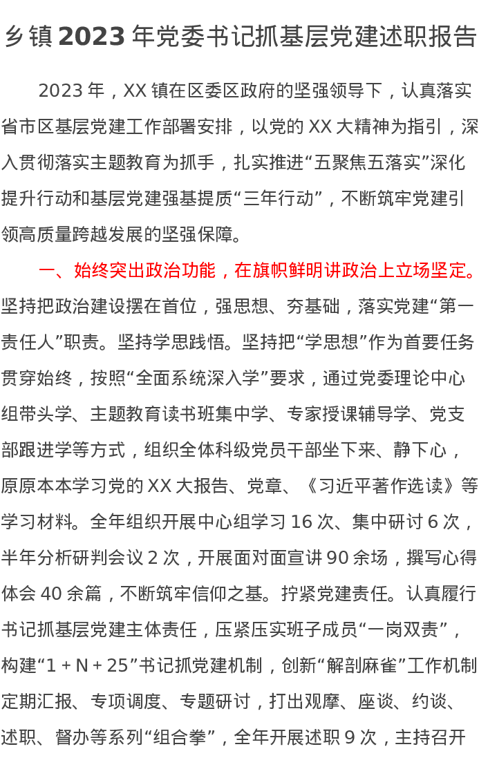 乡镇2023年党委书记抓基层党建述职报告