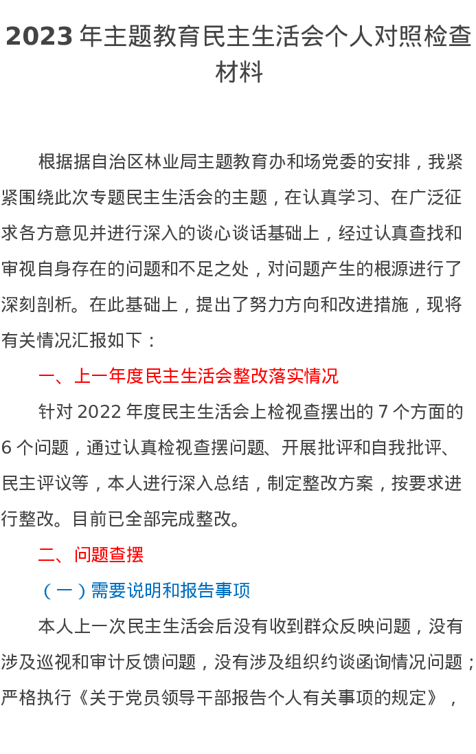 2023年领导干部第二批主题教育民主生活会个人对照检查材料3(特色社会主义思想)