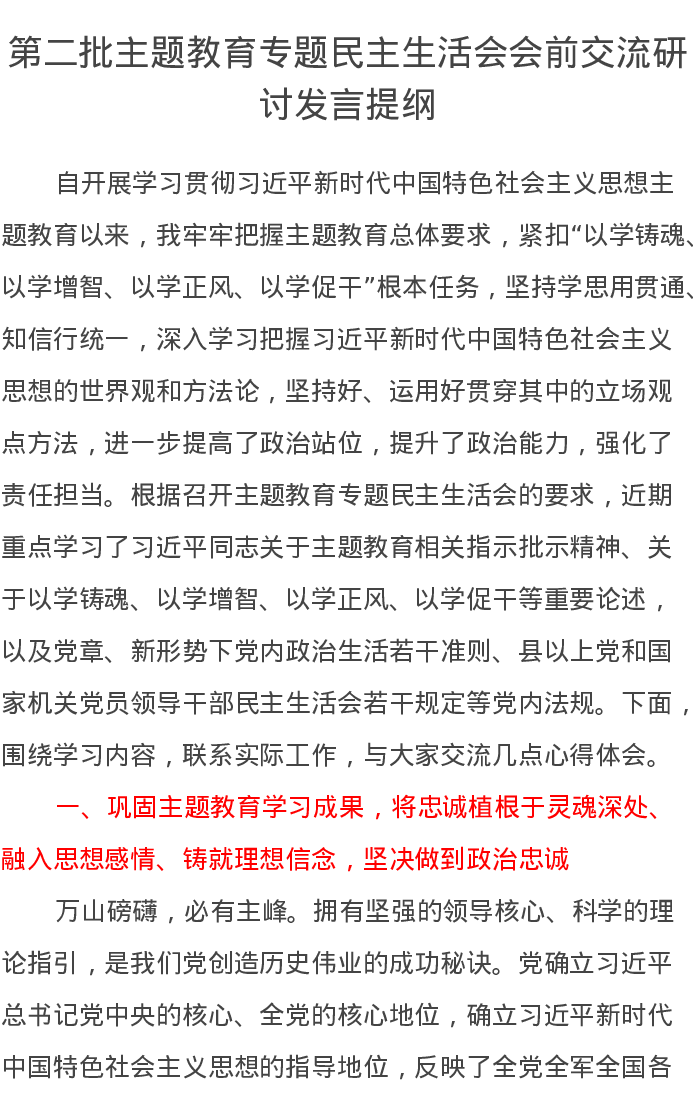 第二批主题教育专题民主生活会会前交流研讨发言提纲(特色社会主义思想)