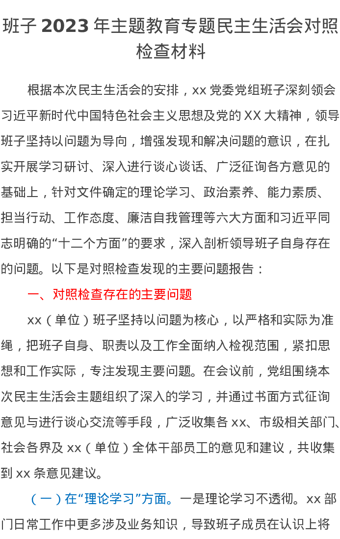 班子2023年第二批主题教育专题民主生活会对照检查材料3(特色社会主义思想)
