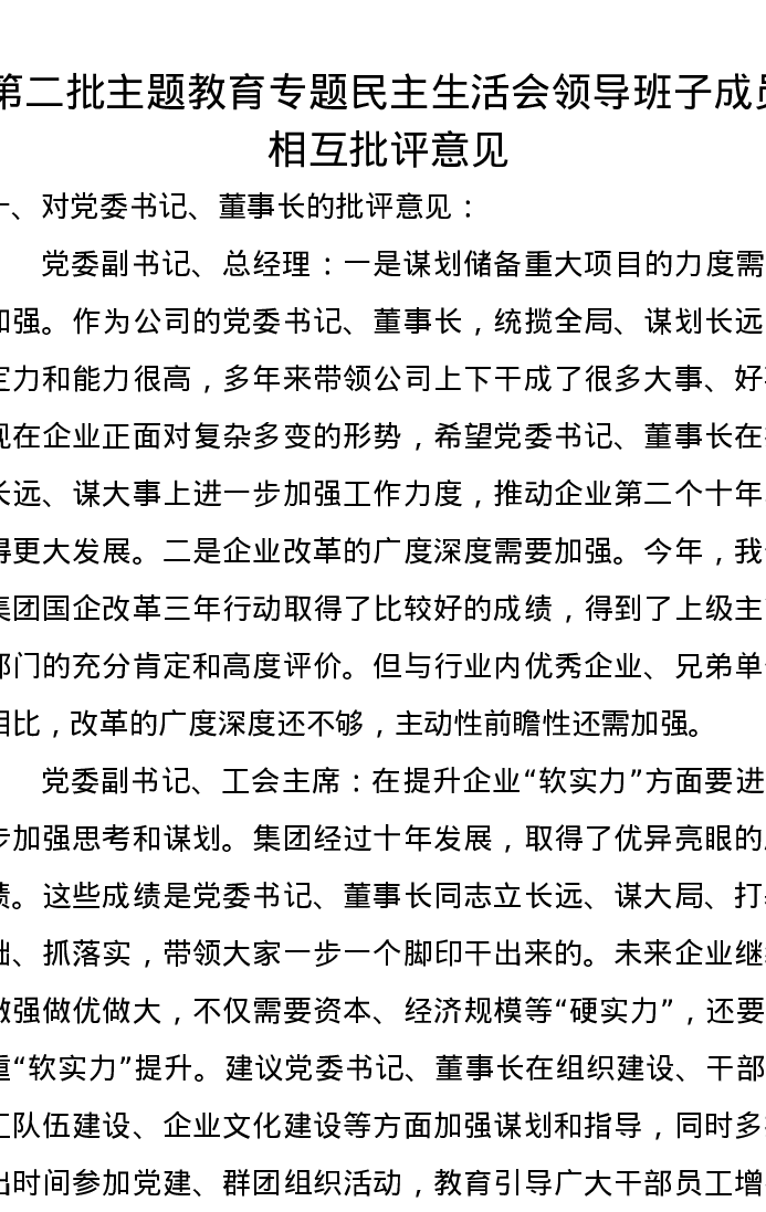 第二批主题教育专题民主生活会领导班子成员相互批评意见(特色社会主义思想)