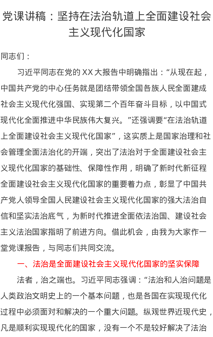 党课讲稿:坚持在法治轨道上全面建设社会主义现代化国家