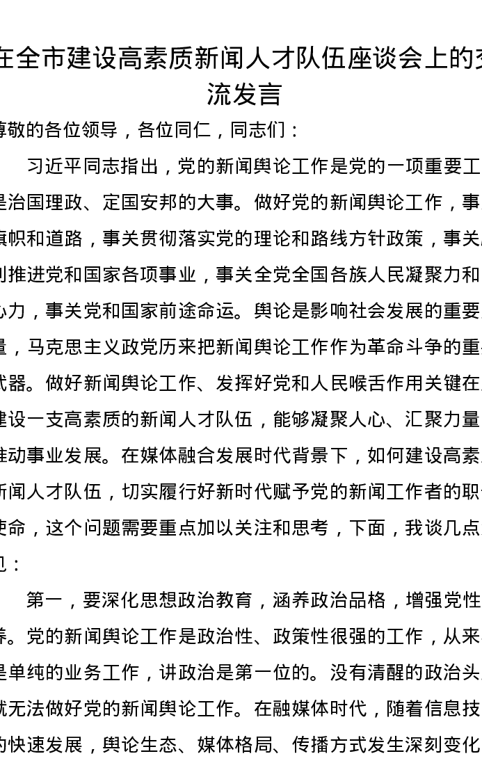 在全市建设高素质新闻人才队伍座谈会上的交流发言