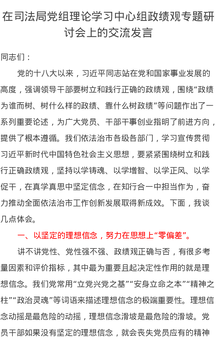 在司法局党组理论学习中心组政绩观专题研讨会上的交流发言