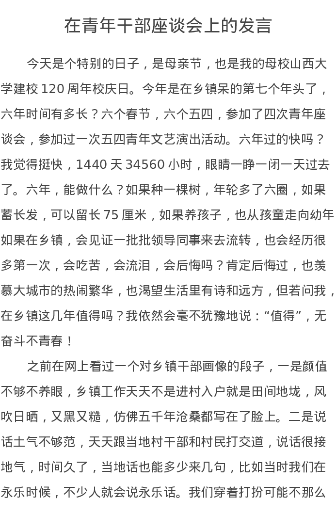 在青年干部座谈会上的发言