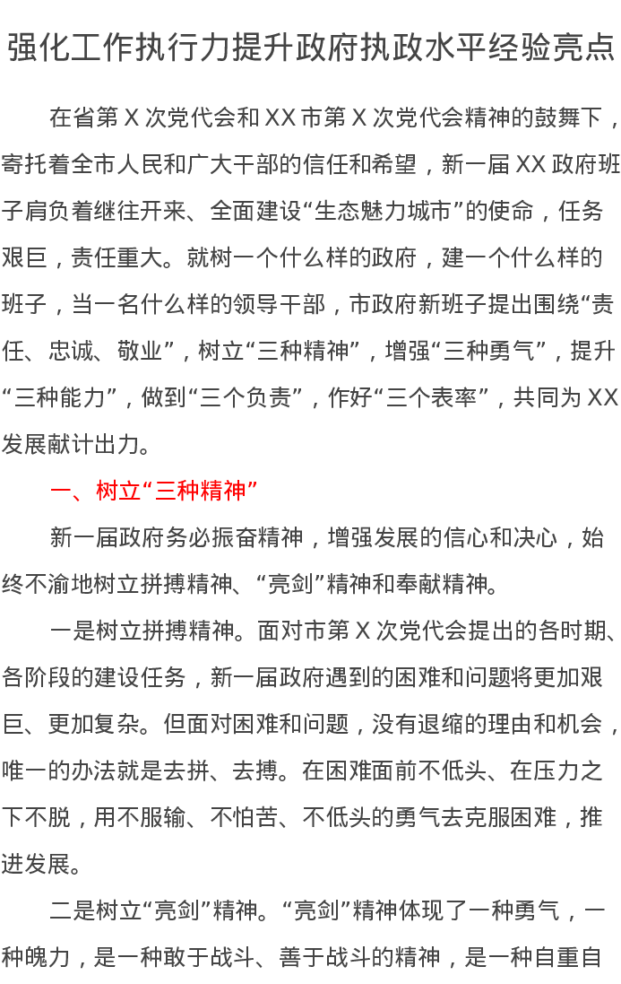 研讨发言:强化工作执行力提升政府执政水平经验亮点