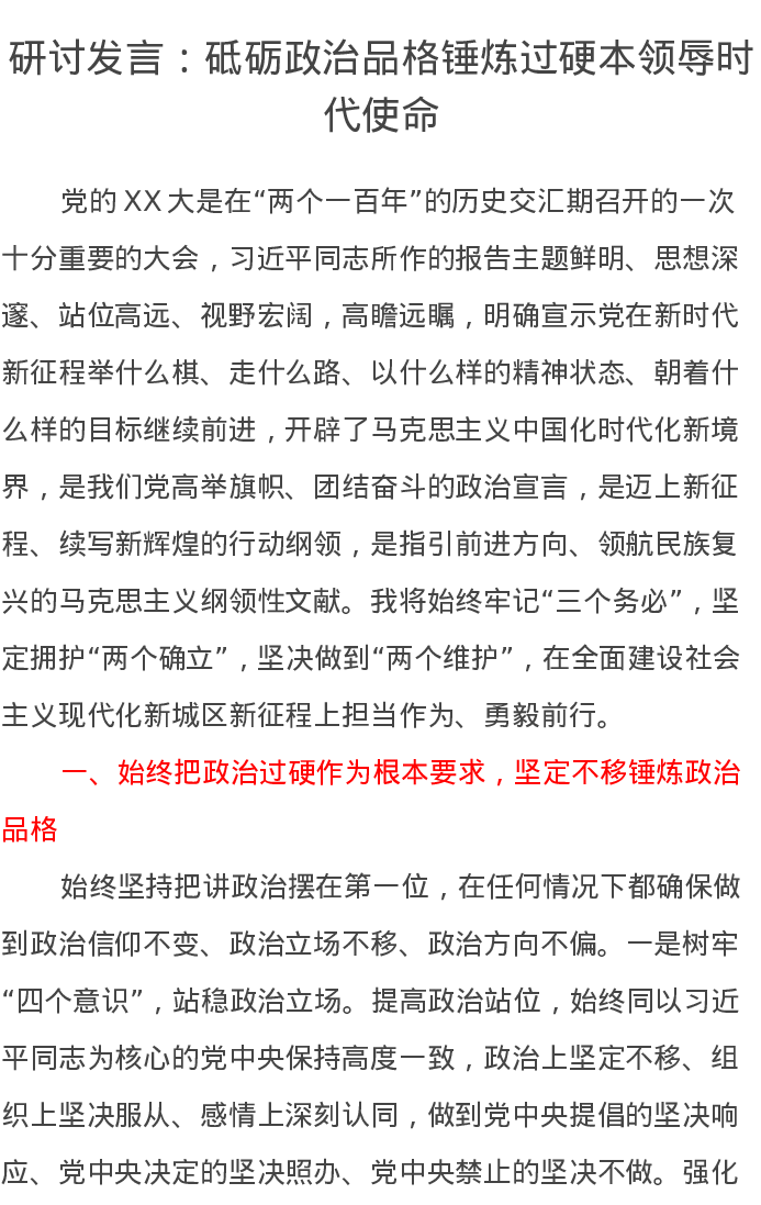 研讨发言:砥砺政治品格锤炼过硬本领辱时代使命