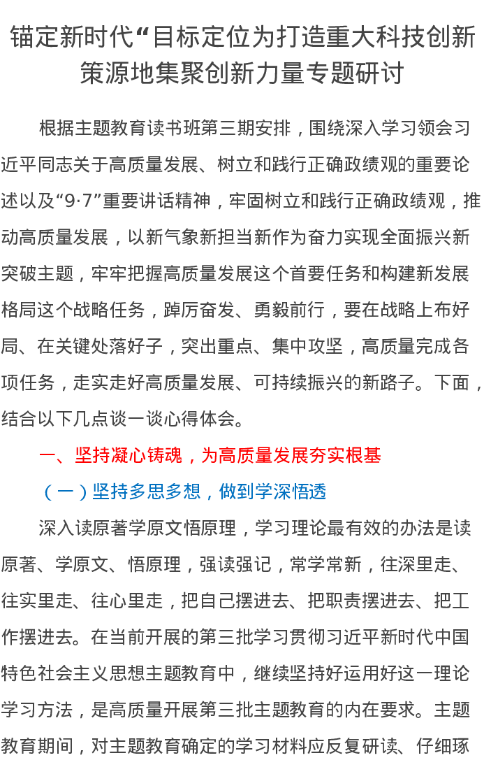 锚定新时代“目标定位为打造重大科技创新策源地集聚创新力量专题研讨发言