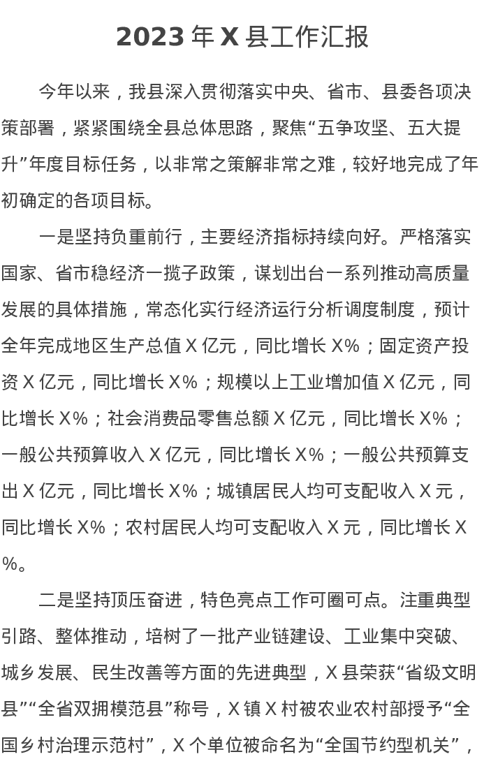 2023年X县工作汇报
