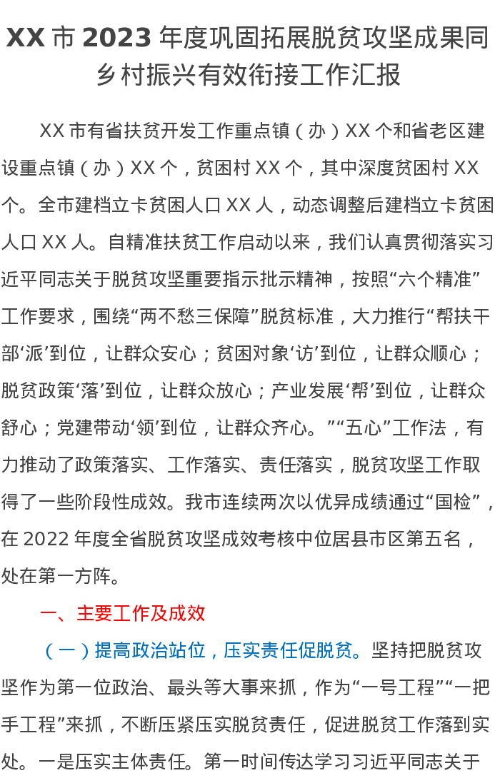 XX市2023年度巩固拓展脱贫攻坚成果同乡村振兴有效衔接工作汇报