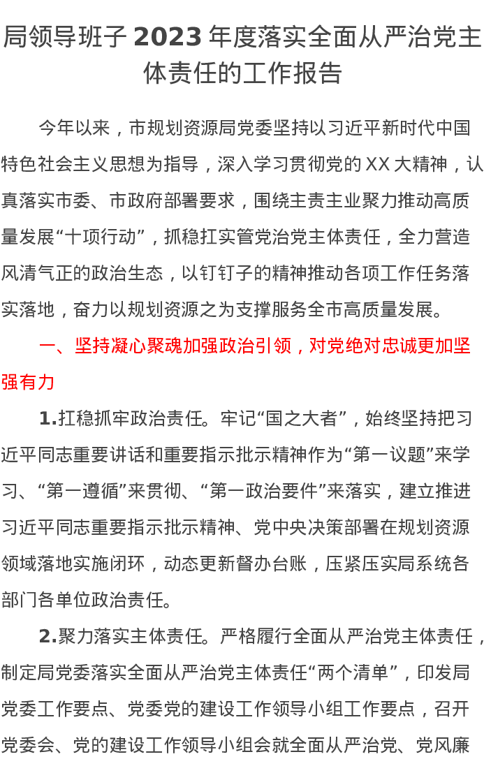 局领导班子2023年度落实全面从严治党主体责任的工作报告