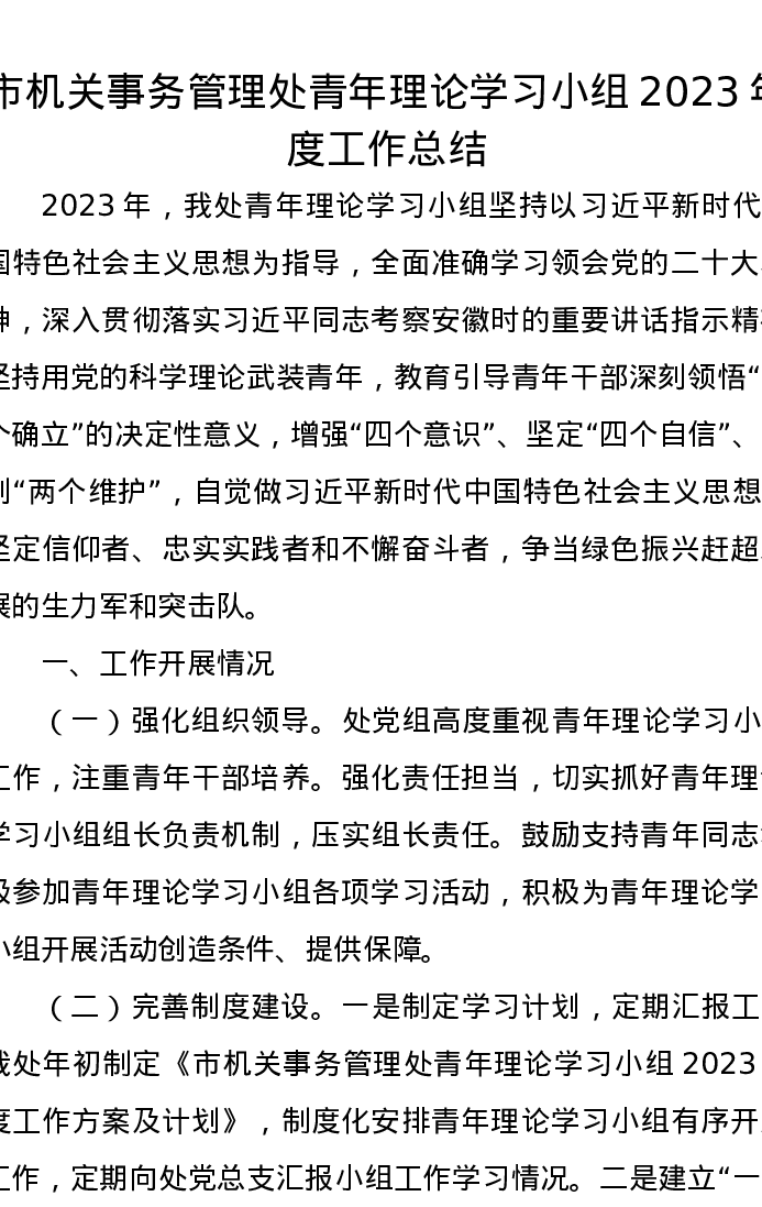 市机关事务管理处青年理论学习小组2023年度工作总结