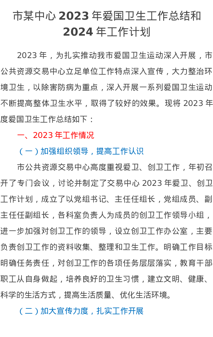 市某中心2023年爱国卫生工作总结和2024年工作计划