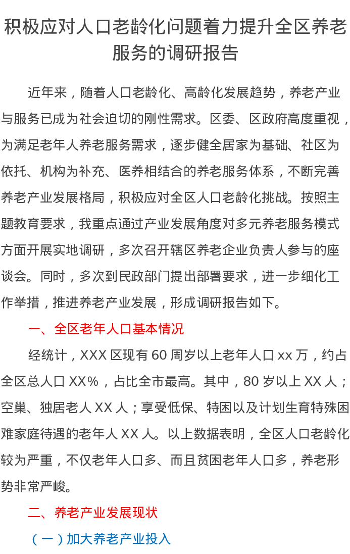积极应对人口老龄化问题着力提升全区养老服务的调研报告