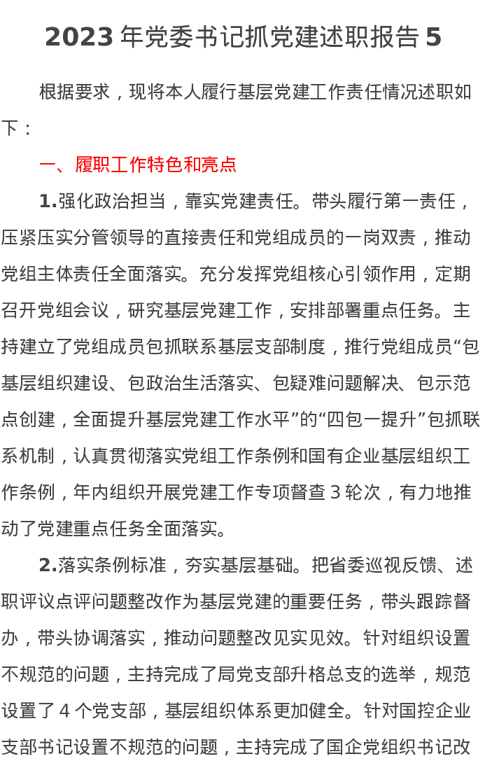 2023年党委书记抓党建述职报告5