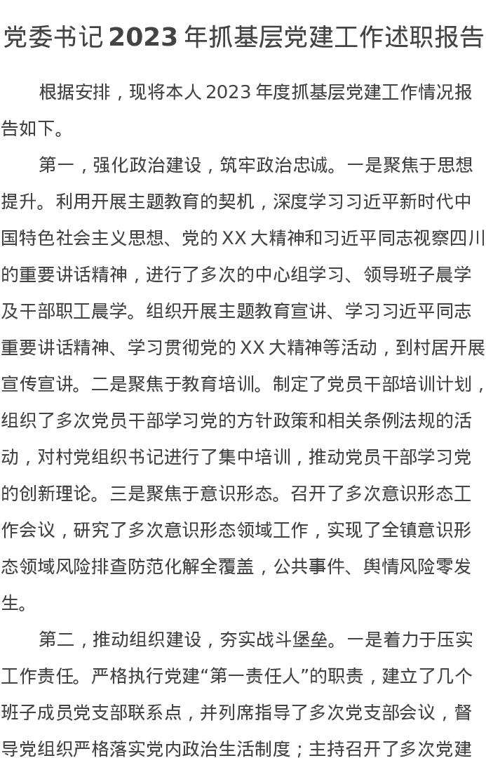 党委书记2023年抓基层党建工作述职报告