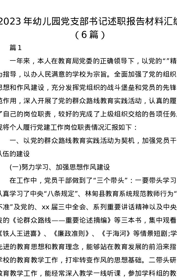 汇编:2023年幼儿园党支部书记述职报告6篇