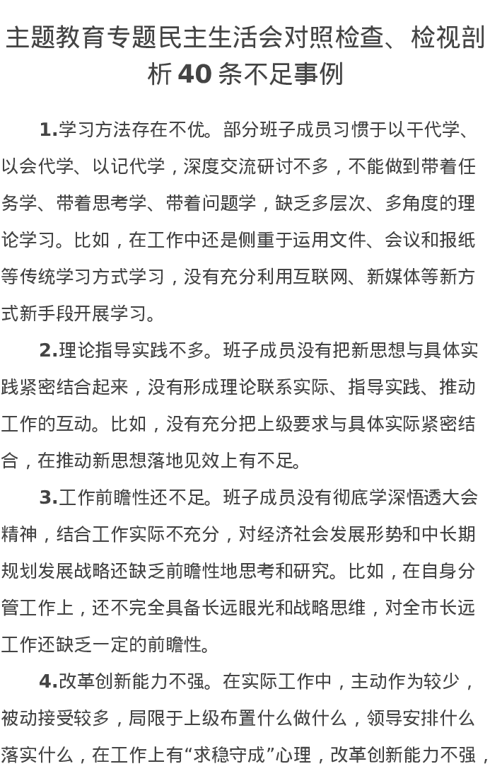 第二批主题教育专题民主生活会对照检查、检视剖析40条不足事例