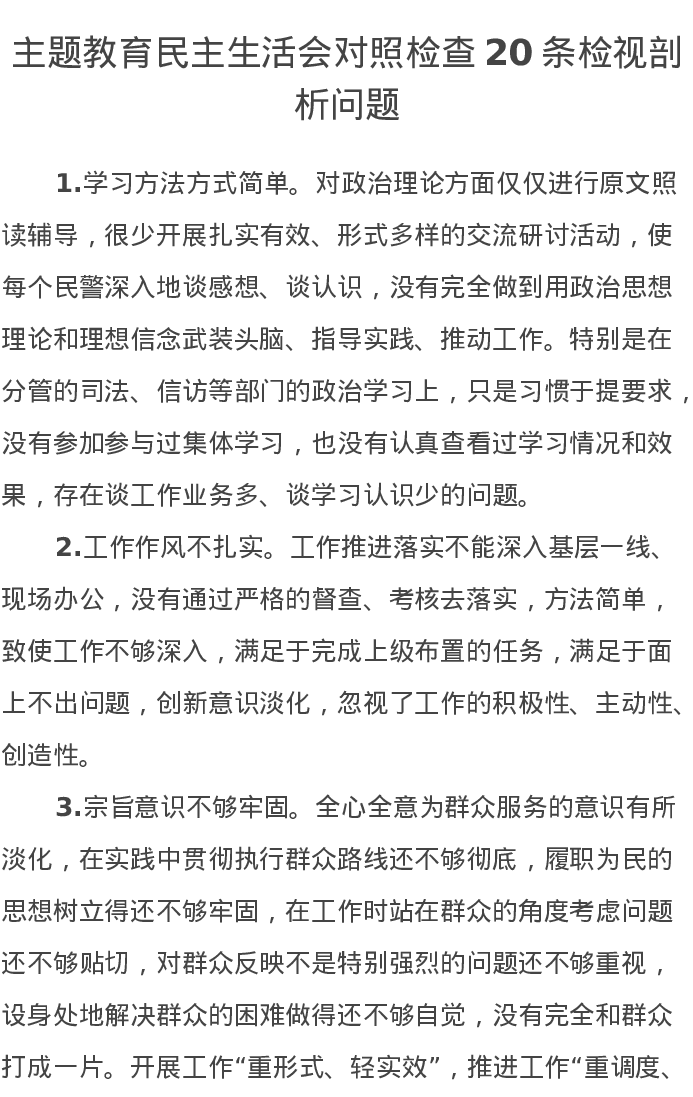 第二批主题教育民主生活会对照检查20条检视剖析问题(特色社会主义思想)