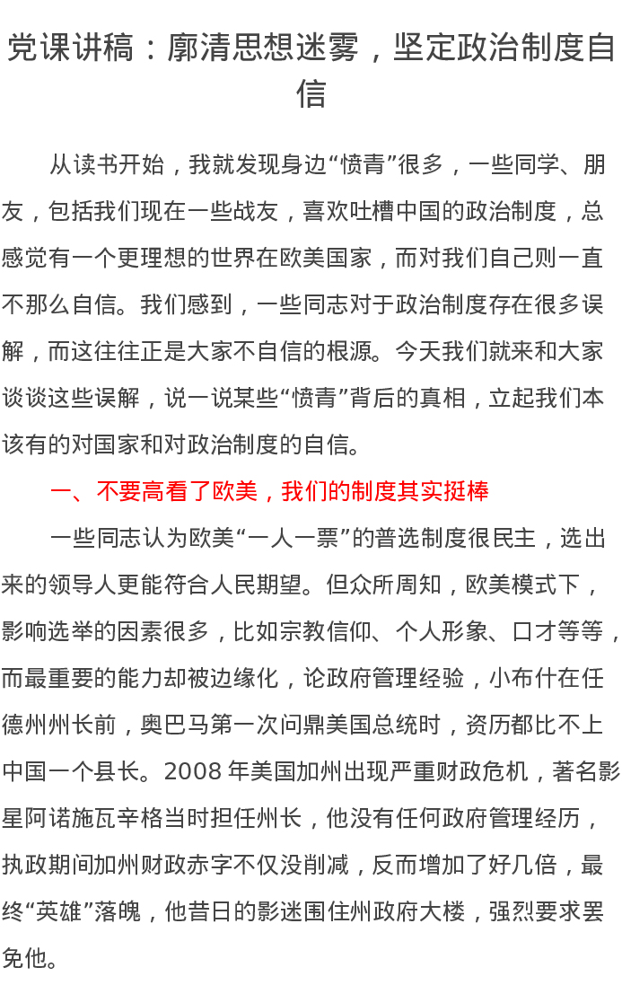 党课讲稿:廓清思想迷雾,坚定政治制度自信