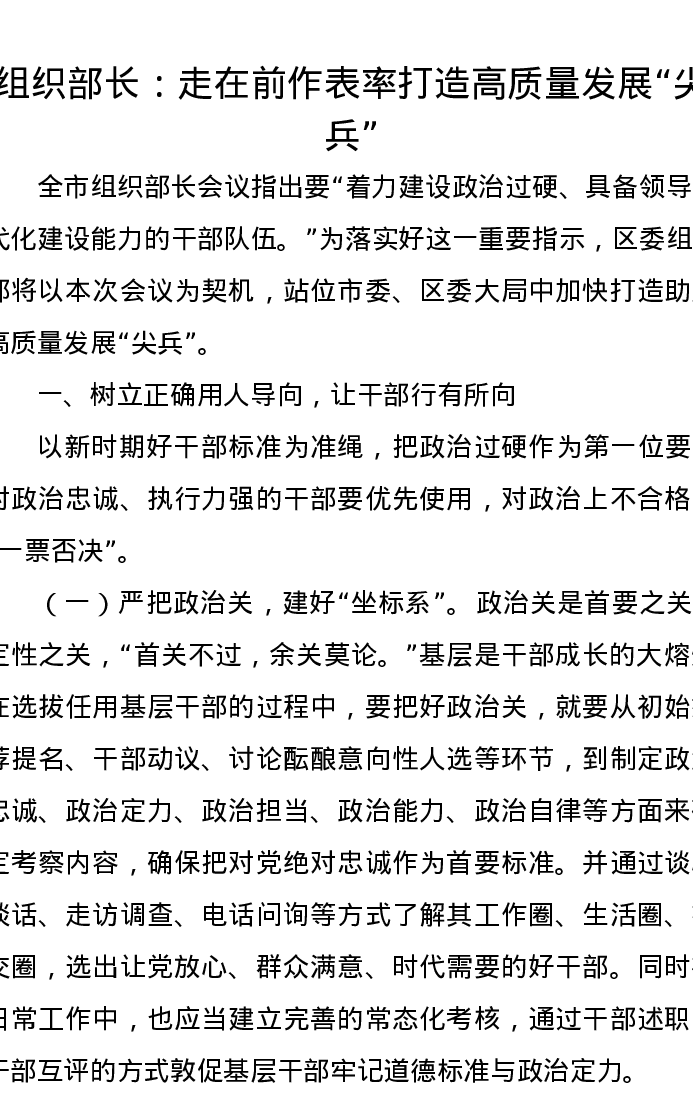 组织部长:走在前作表率打造高质量发展“尖兵”