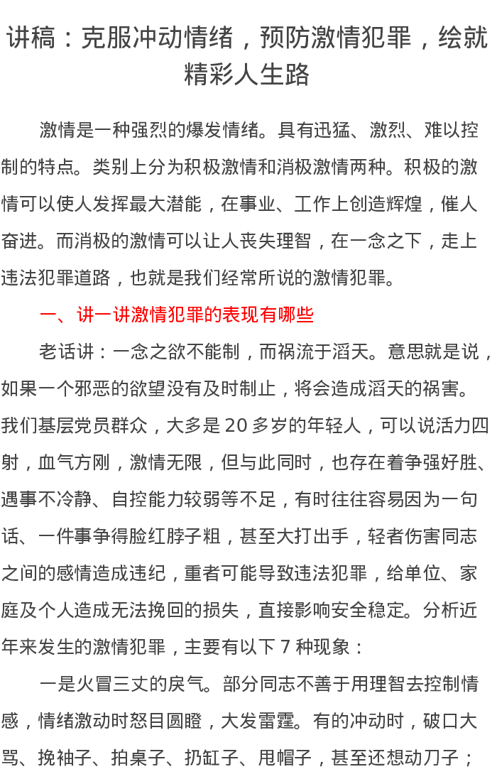 讲稿:克服冲动情绪,预防激情犯罪,绘就精彩人生路