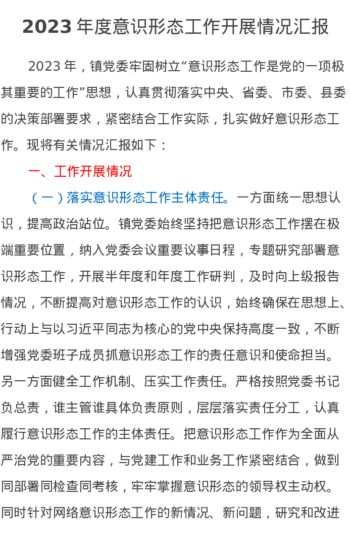 2023年度意识形态工作开展情况汇报