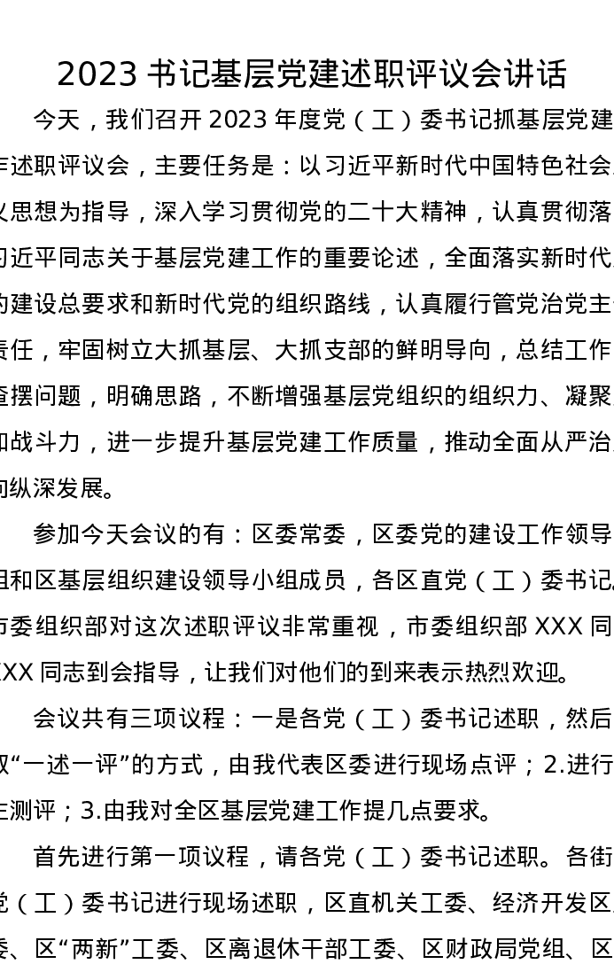 2023书记基层党建述职评议会讲话