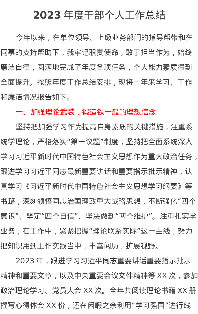 2023年度干部个人工作总结