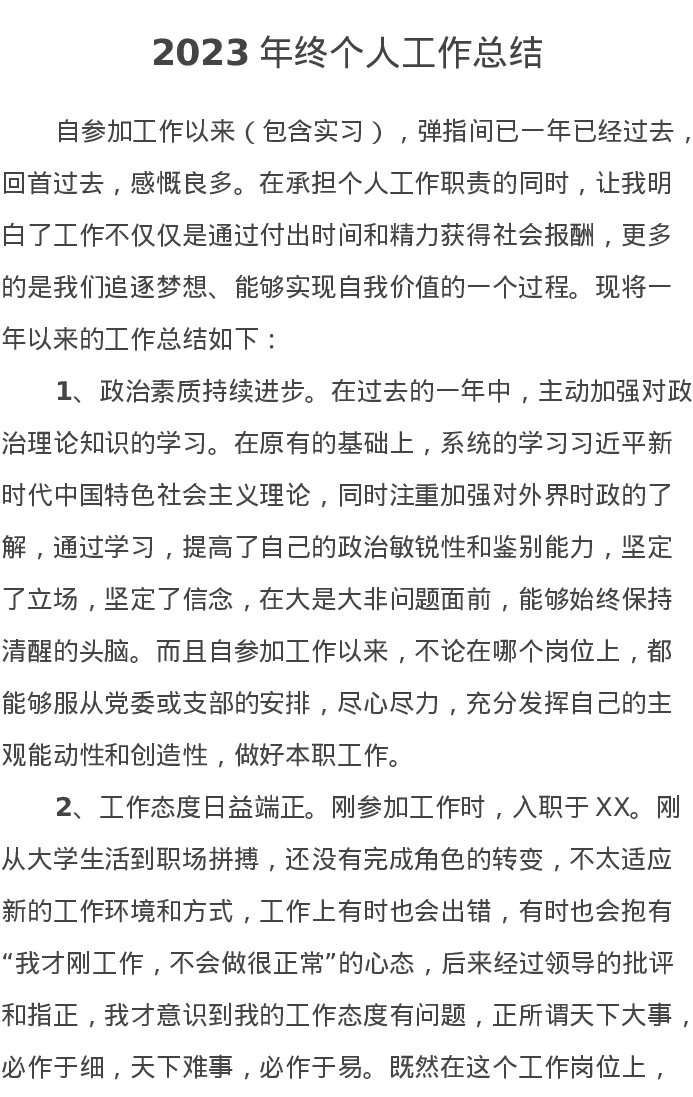 2023年终个人工作总结