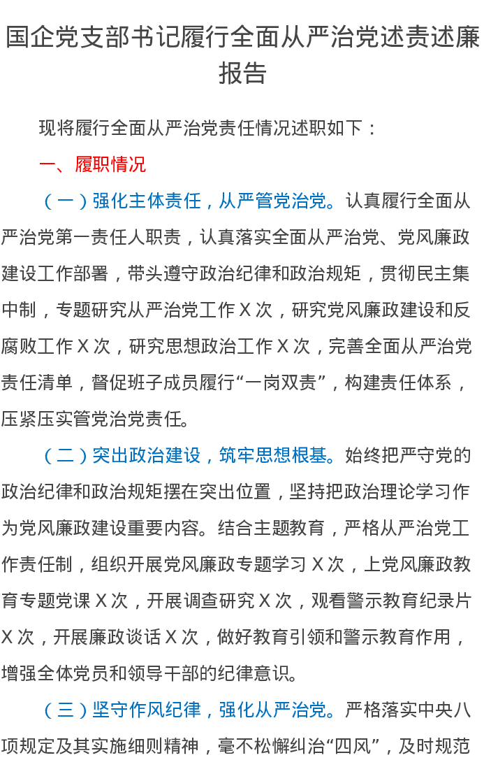 国企党支部书记2023年履行全面从严治党述责述廉报告