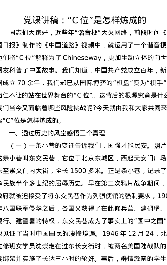 党课讲稿:“C位”是怎样炼成的