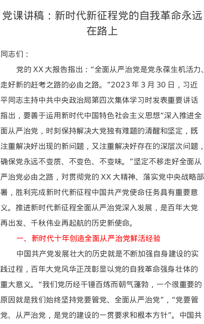 党课讲稿:新时代新征程党的自我革命永远在路上