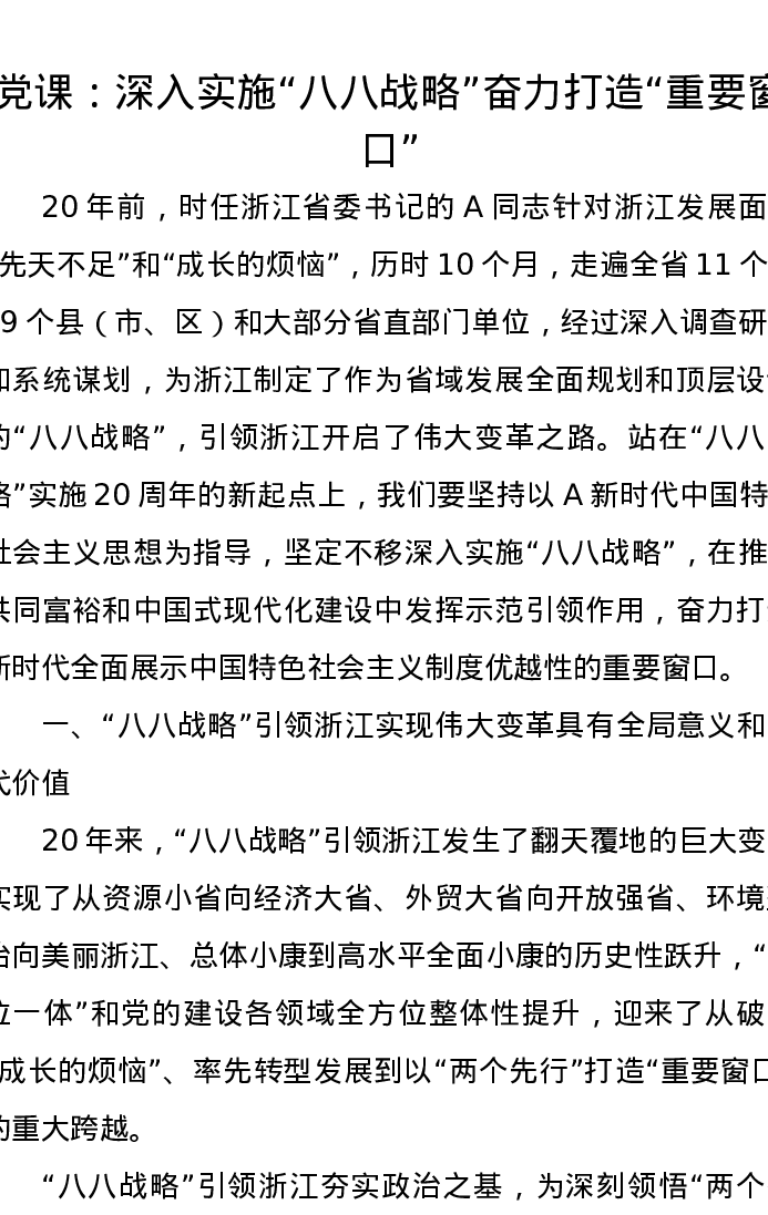 党课讲稿:深入实施“八八战略”奋力打造“重要窗口”