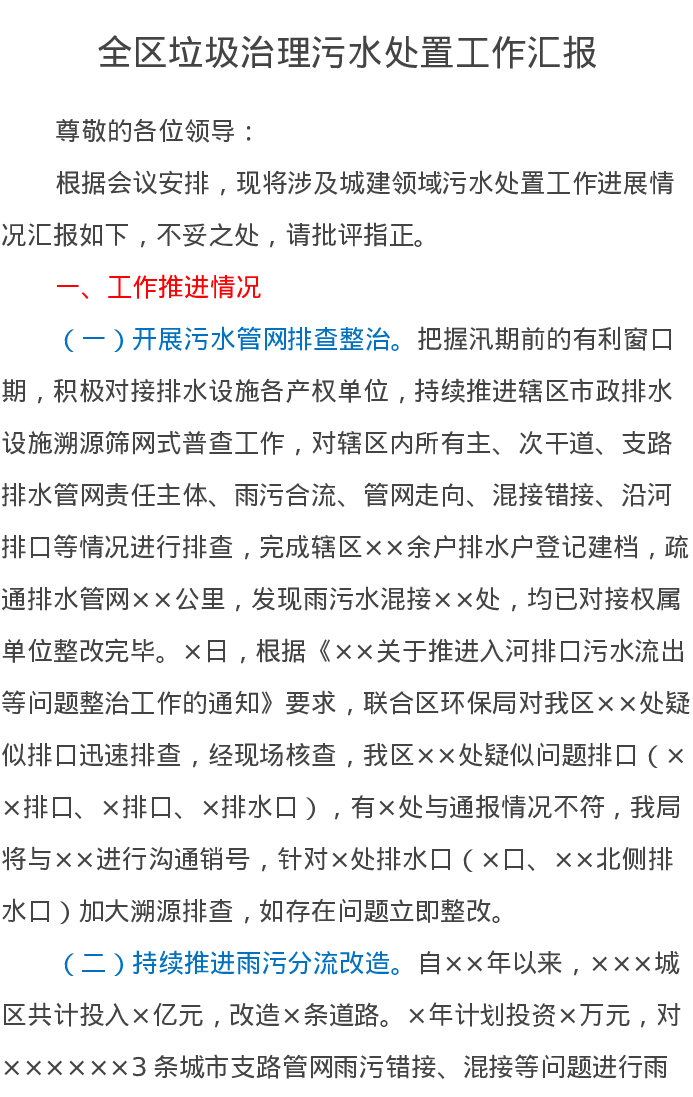 全区垃圾治理污水处置工作汇报