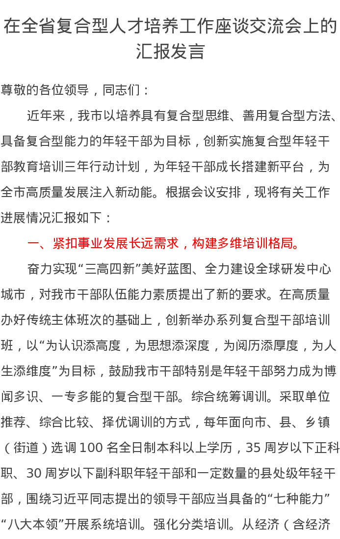 在全省复合型人才培养工作座谈交流会上的汇报发言