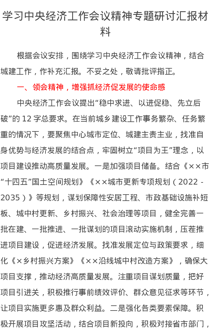 学习中央经济工作会议精神专题研讨汇报材料