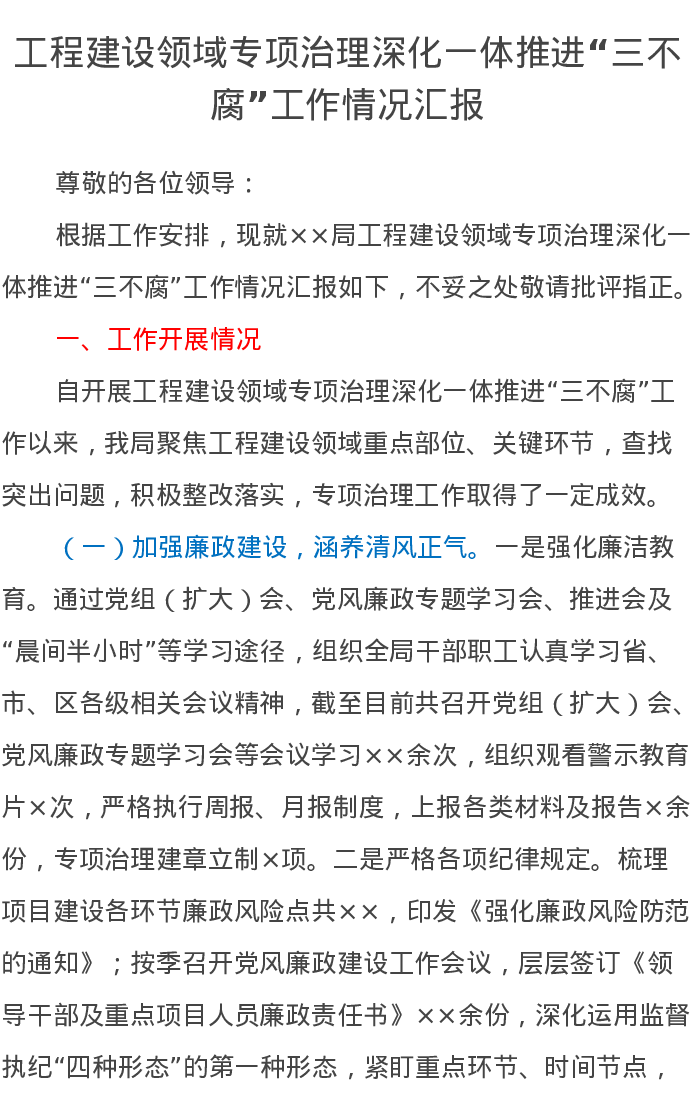 工程建设领域专项治理深化一体推进“三不腐”工作情况汇报
