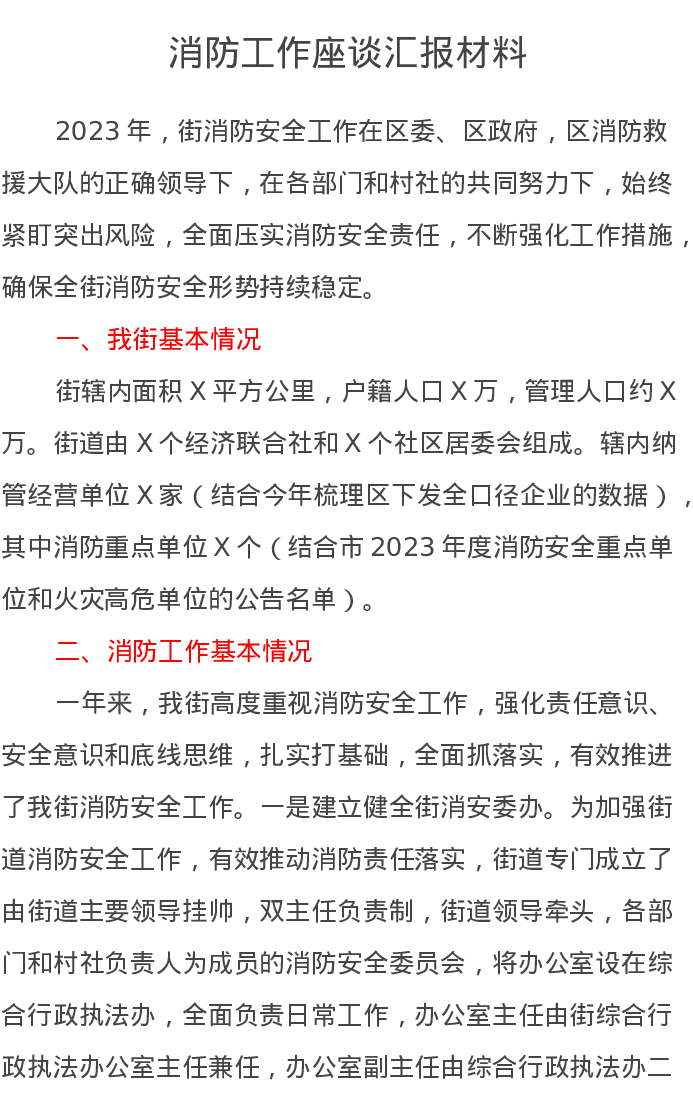 消防工作座谈汇报材料