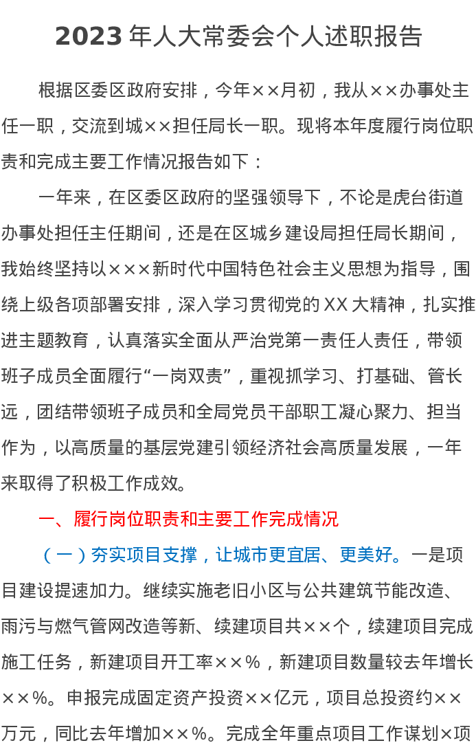2023年人大常委会个人述职报告