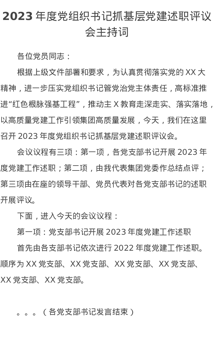 2023年度党组织书记抓基层党建述职评议会主持词
